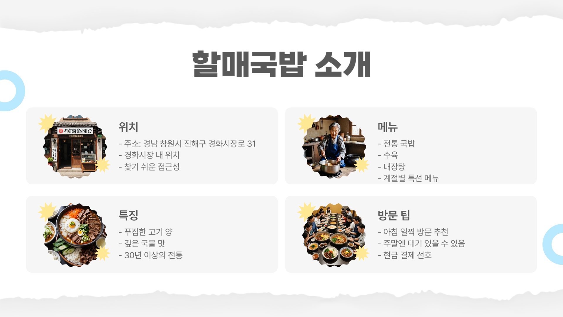 - 특징: 전통 국밥 전문점