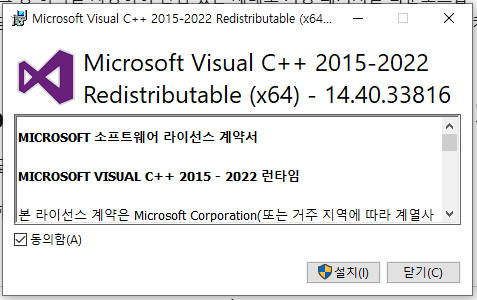 다음으로 'Microsoft Visual C++' 패키지를 아래 링크를 통해 다운로드하시기 바랍니다.