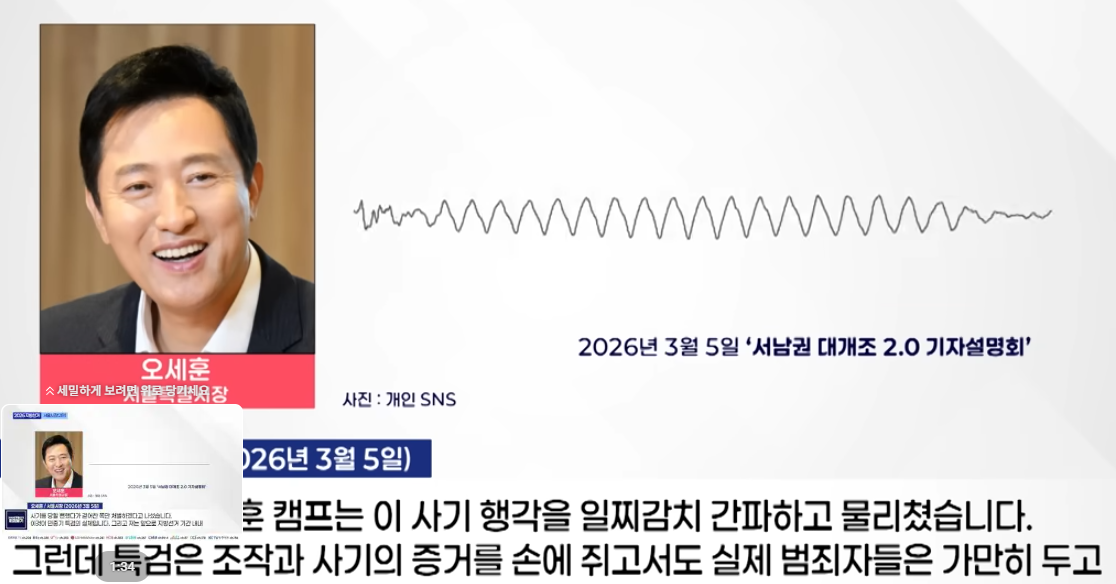 오 시장은 서남권 대개조 기자설명회 현장에서 이같이 토로하며 결백을 주장했지만, 지방선거 기간 내내 법정을 드나들어야 하는 상황 자체가 캠프에는 치명적인 악재로 작용하고 있습니다.