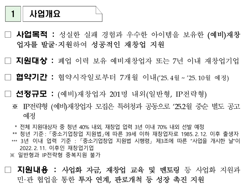 이 사업은 '실패 후 재도전'을 응원하는 사업입니다. 따라서 단순히 창업을 처음 하는 분들은 대상이 아닙니다.