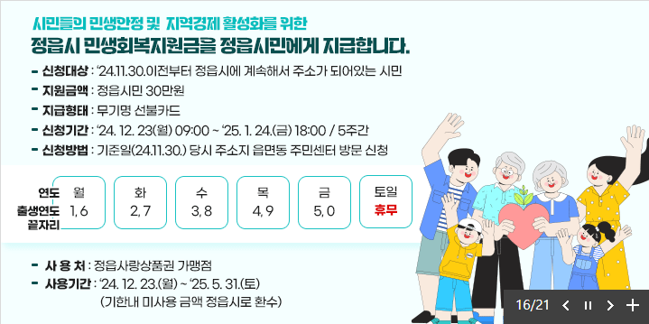 - 지원금은 반드시 기한 내 사용해야 하며, 사용처는 정읍사랑상품권 가맹점으로 제한됩니다.