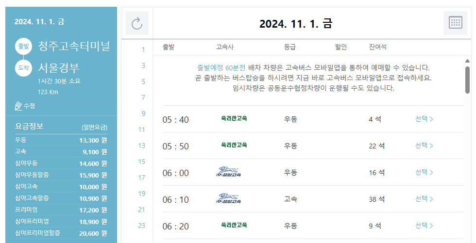 - 청주 ↔ 서울(경부): 수도권으로의 빠른 연결!