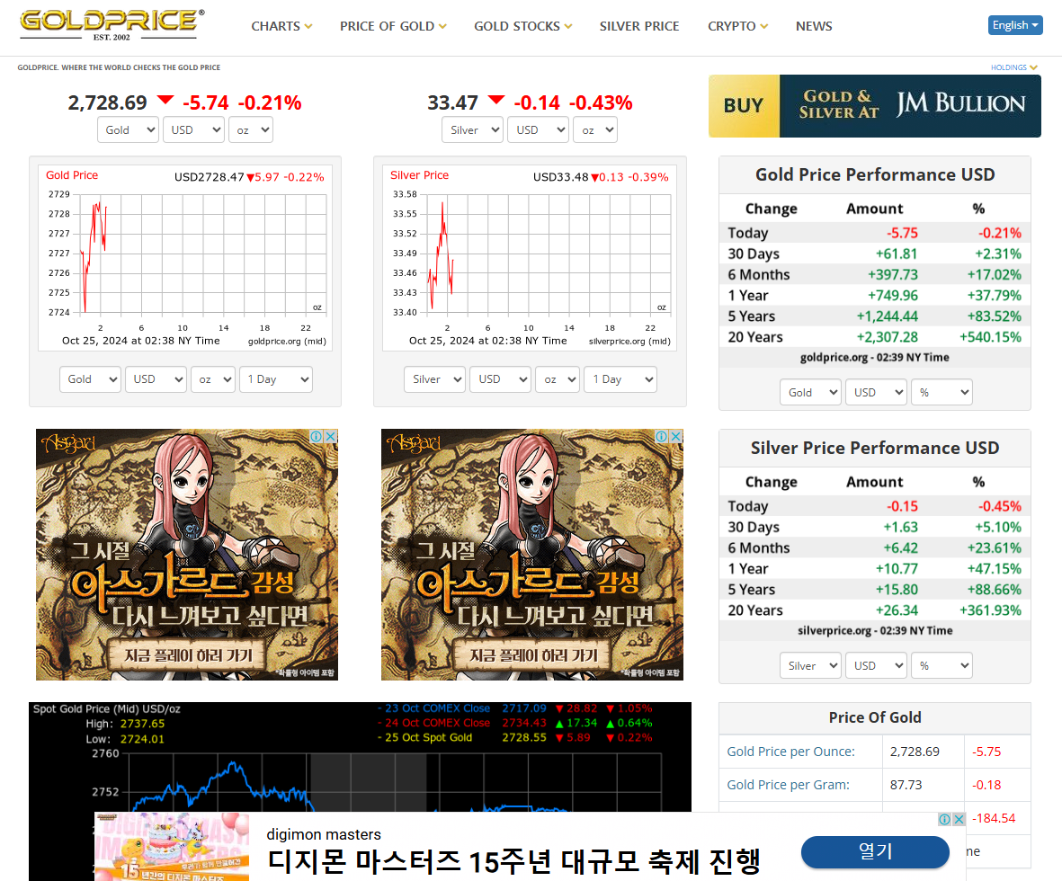 국제 금 시세를 실시간으로 확인하고 싶다면 Goldprice.org를 추천합니다. 이 사이트는 1973년부터의 데이터를 제공하여 장기적인 금값 변동을 분석하기에 좋습니다.