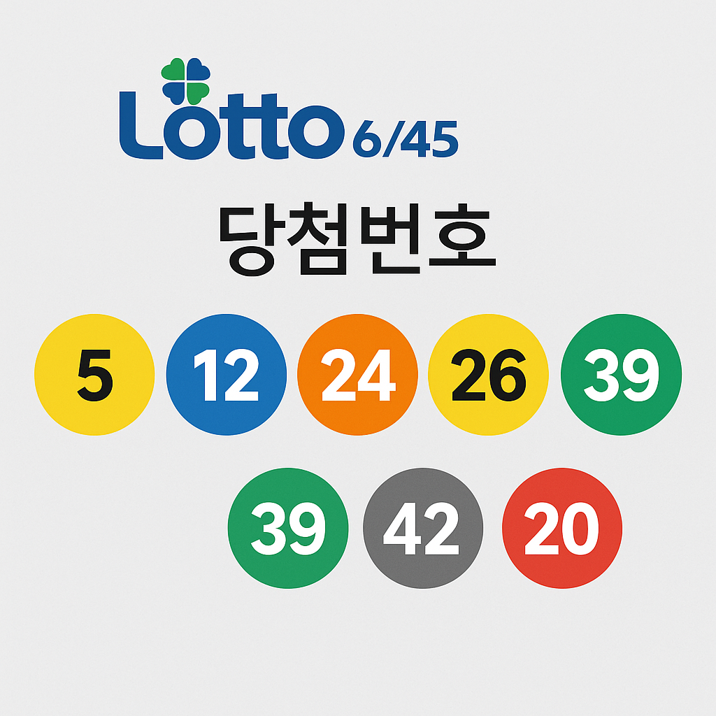 2025년 4월 26일 추첨된 제1169회 로또 1등 당첨번호는 5, 12, 24, 26, 39, 42입니다.